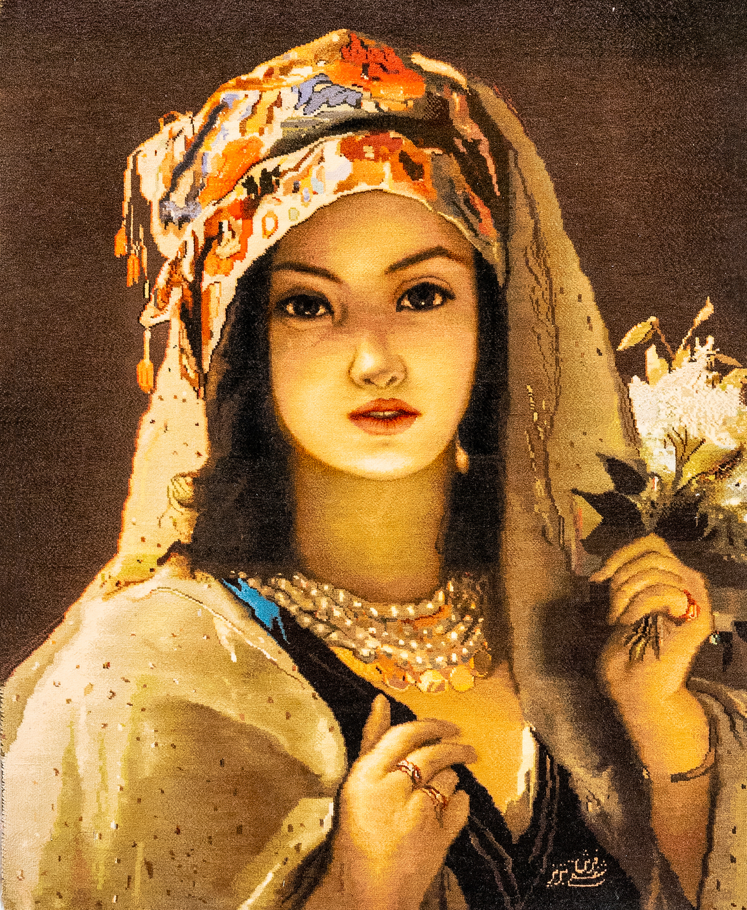تابلو فرش دستباف شفقی تبریز دختر زیبای مصری